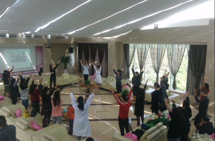 一年前因为子宫腺肌症在我院接受超声消融的刘女士是一位体育运动员,47岁的她脸上却看不到一丝岁月的痕迹,身材也婀娜完美。她告诉我们,超声消融后,自己的痛经症状得到了明显的缓解,对海扶医院充满了感恩。今天她分享了自创的媒体健身操,带动了全场人员的积极学习,现场欢声笑语不断。