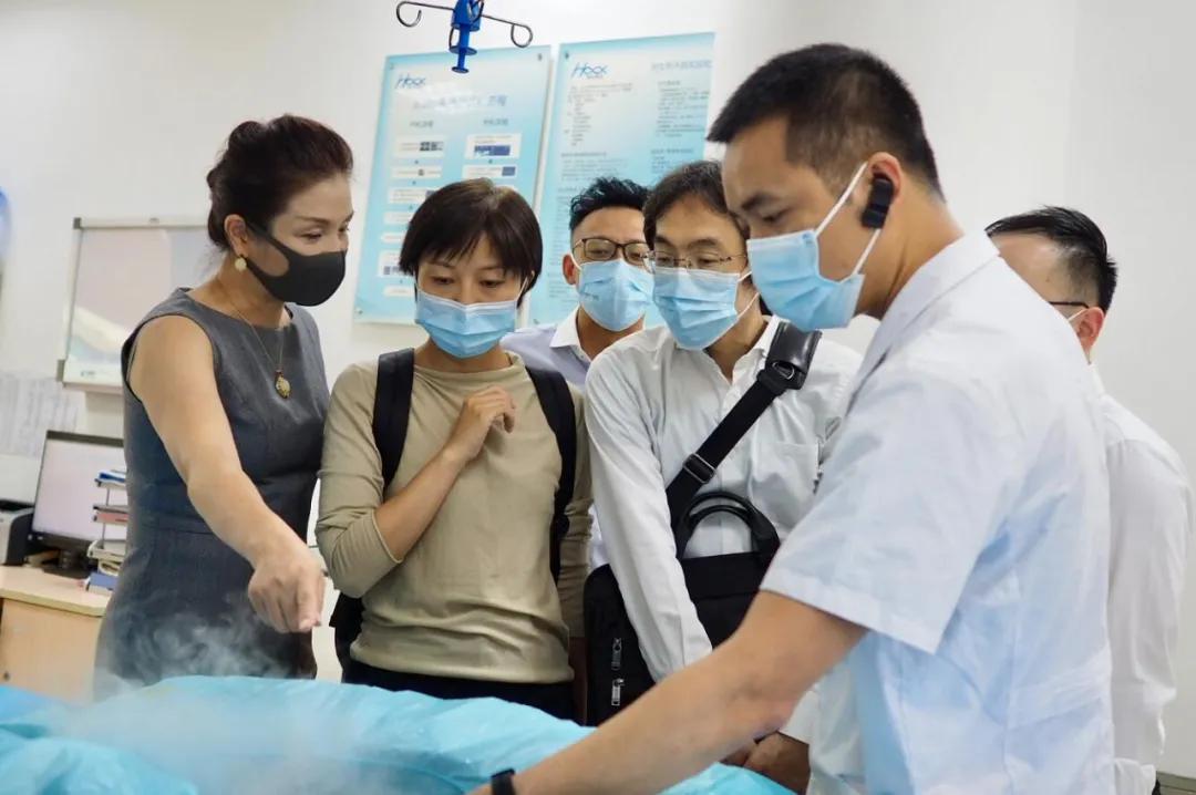 随后,研究组一行来到了海扶刀®治疗室,详细了解了该设备治疗原理、适应症、优势等。海扶刀®临床应用高级医生邓勇斌主任的讲解让研究组一行快速、深入了解了该技术的优势。
