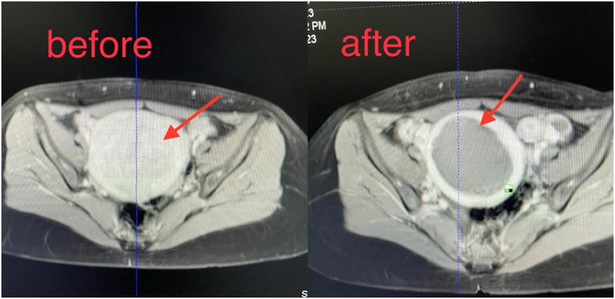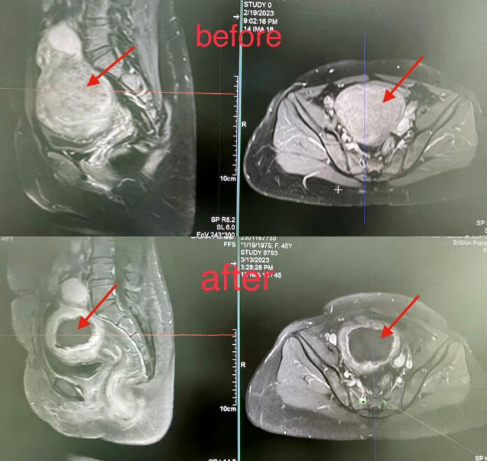 第一例子宫肌瘤(HIFU术前术后磁共振影像对比)
