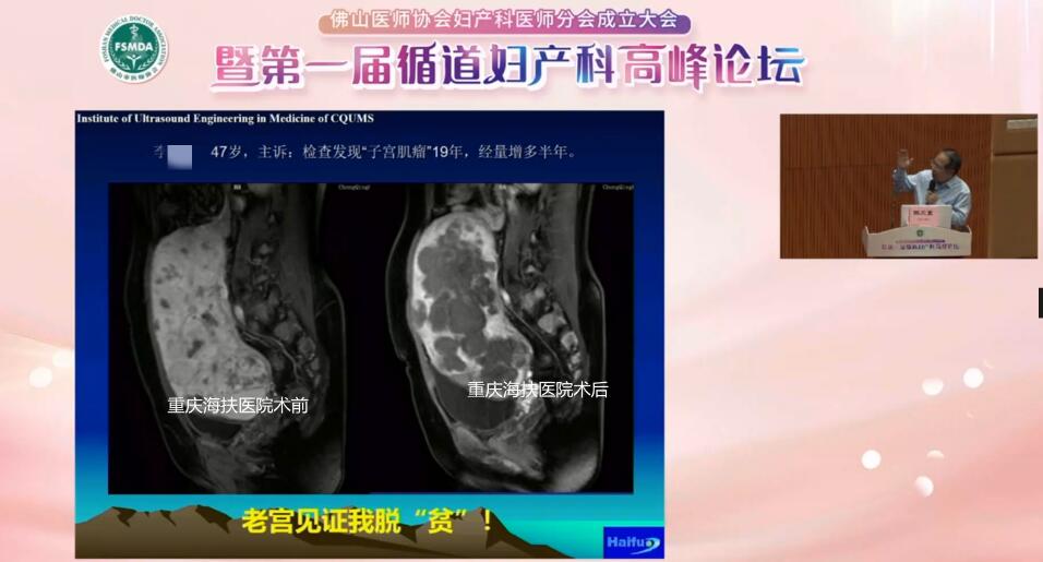 3月19日,佛山医师协会妇产科医师分会成立大会暨第一届循道妇产科高峰论坛举行,重庆医科大学教授、重庆海扶医院首席医学专家陈文直教授出席并发表题为《聚焦超声治疗在妇产科的应用》的讲座。