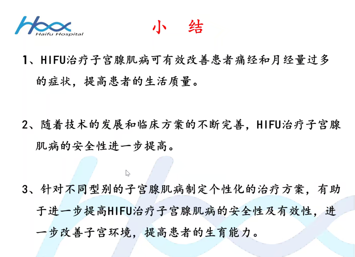 张教授介绍了高强度聚焦超声消融(HIFU)的技术原理,并结合具体病例,介绍了该技术治疗子宫腺肌病的优势,详细讲解了内在型、外在型、肌壁间型、全层弥漫型等不同分型子宫腺肌病治疗的要点,并指出对有生育要求的女性,需注意选择性消除病灶,保护子宫浆膜和内膜功能。