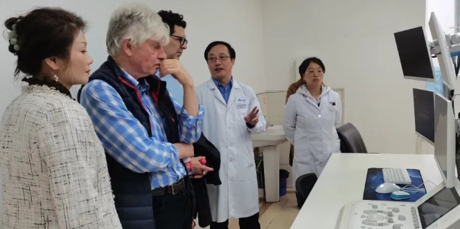 张院长等还陪同Michael Douek教授、David Cranston教授参观了超声医学工程国家重点实验室、遂宁中心医院等地,探讨临床科研合作等事宜。