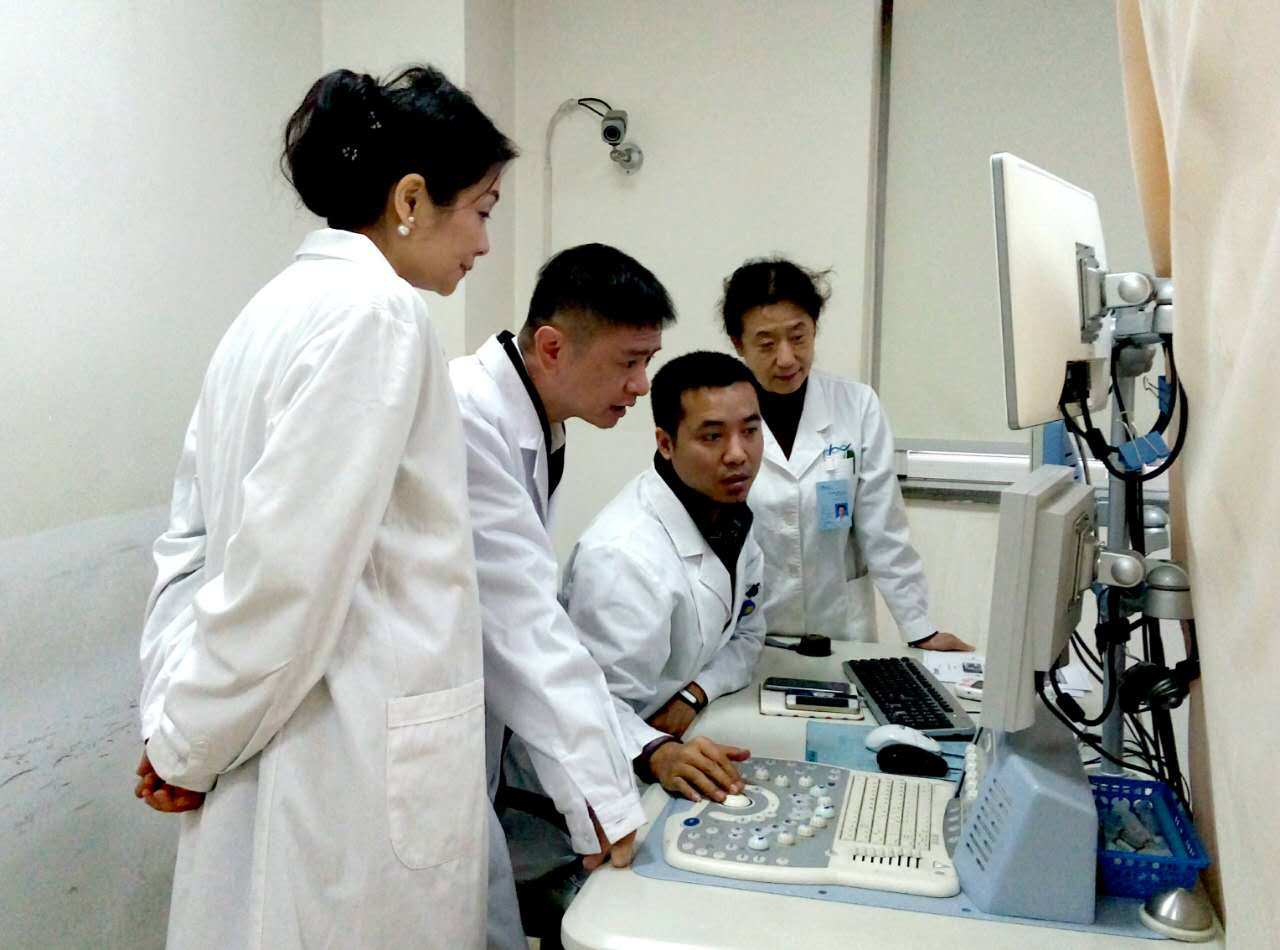 在聚焦超声治疗室,王医生特别向曾经援外南非的邓勇斌医生了解聚焦超声治疗原理、效果以及在海扶医院的运用情况;在理疗科,王医生对利用聚焦超声技术治疗慢性软组织损伤疼痛的“阿是”治疗仪也产生了浓厚的兴趣。