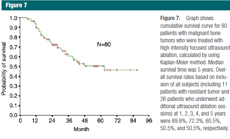 80例骨肿瘤的聚焦超声消融治疗后5年生存率达到50.5%(已被列入中国教课书)