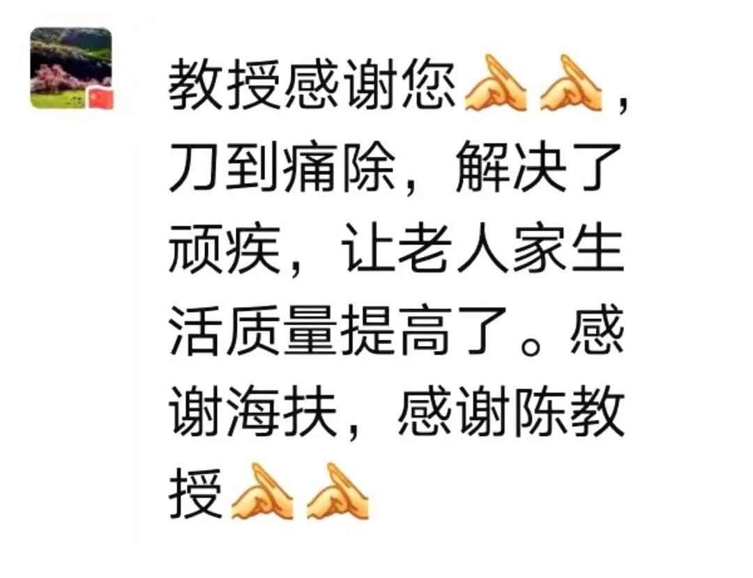“说起来,我还是从一个广东到重庆来找陈教授治疗子宫腺肌病的朋友那里知道了他的厉害……现在有空就喜欢翻翻陈教授的新浪微博,他讲的故事很有趣。妈妈都办好入院、排好手术了,那天突然翻教授微博,看到他做骨刺的案例!这不,一跟他联系,就赶紧过来了!”