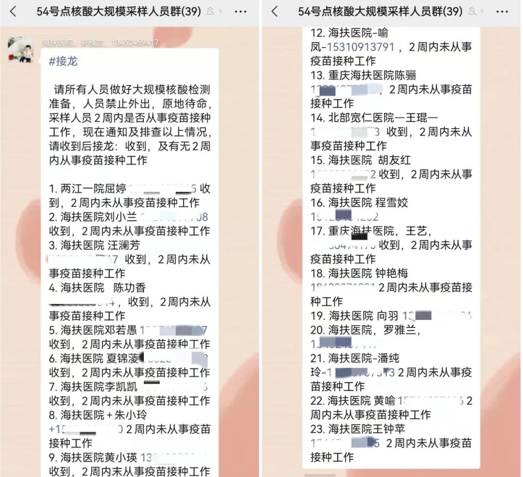 我院待命核酸采集医务人员共30余人,第一批接到命令赶赴“前线”的有院感科刘小兰科长、门诊朱小玲主任、妇科黄小瑛医生、肿瘤科陈骊主任、病房钟艳梅护士长、手术室潘纯玲护士、陈军香护士、罗雅兰护士等。