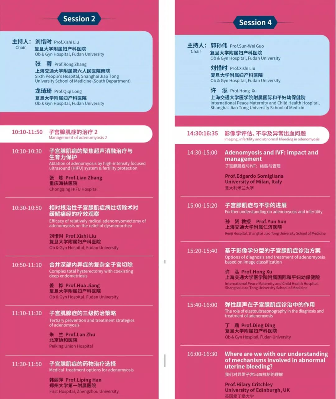 会议邀请了来自复旦大学附属附属妇产科医院、上海交通大学附属仁济医院,上海交通大学附属第六人民医院、上海交通大学医学院附属国际和平妇幼保健院、北京协和医院、重庆医科大学海扶医院以及美国密歇根州立大学、美国加州大学、日本东京大学、意大利米兰大学、英国爱丁堡大学等子宫腺肌症领域专家专家,通过线上结合线下的方式,就子宫腺肌症的流行病学、病理生理机制、子宫腺肌症的治疗、子宫腺肌症的影像学评估、不孕、异常出血等问题进行探讨。