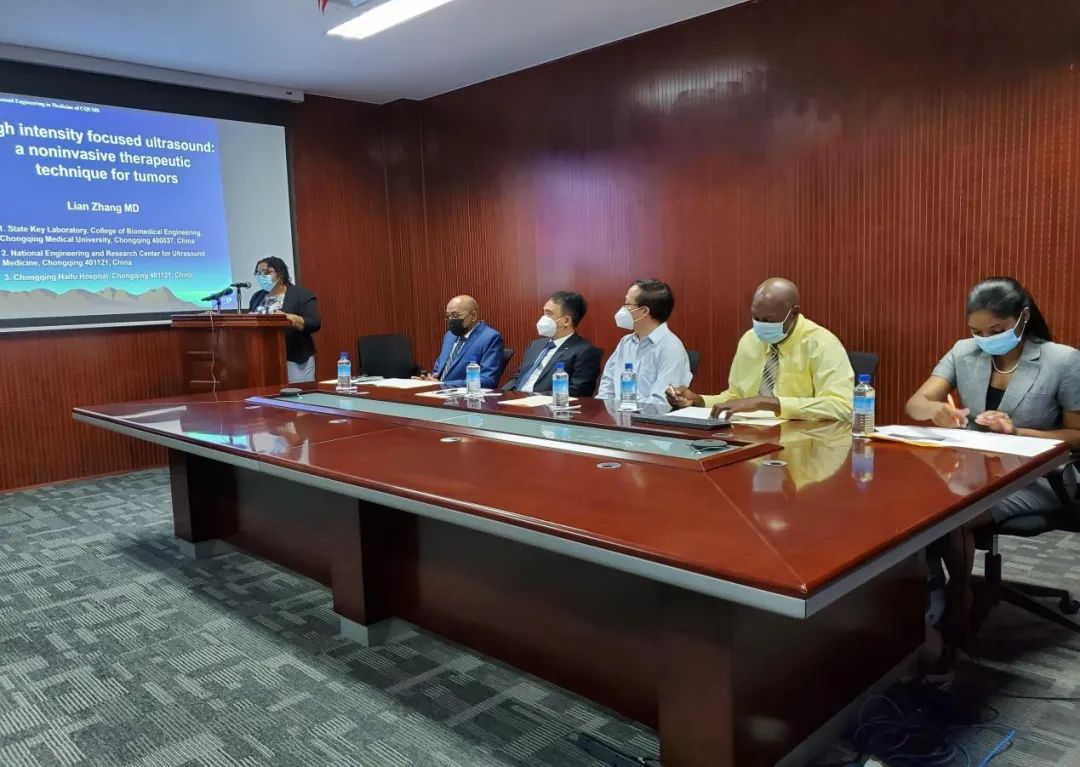 重庆医科大学教授、重庆海扶医院张炼院长详细介绍了海扶刀®的工作原理和其在肿瘤、妇科常见病治疗领域的广泛应用。中国专家在对中多友谊医院医生进行为期2个月的培训后,还将通过聚焦超声消融手术全球协同服务中心持续提供远程技术支持。