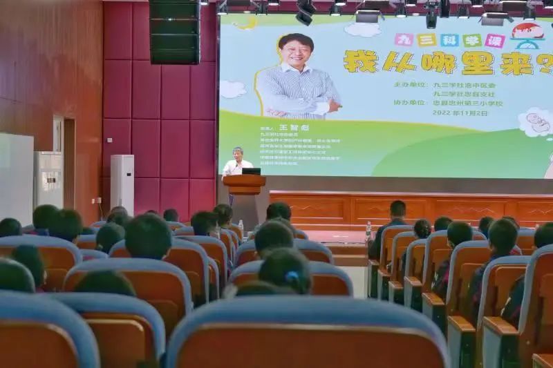 2022年11月2日,由九三学社渝中区委、九三学社忠县支社联合开展的“九三科学课”活动走进忠县。第一届“九三楷模”、超声医学工程国家重点实验室主任、全国首席科学传播专家王智彪教授在忠县忠州第三小学校上了一堂科学课——《我从哪里来》,全县60余所小学、4万余名学生通过网络直播观看了讲座。