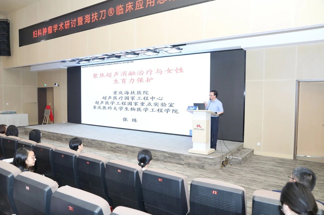 重庆医科大学教授、重庆海扶医院院长张炼代表超声医疗国家研究中心授予湖南妇女儿童医院“聚焦超声消融手术临床应用示范中心培育基地”牌匾,并作了题为《聚焦超声消融治疗与生育力保护》的学术讲座。