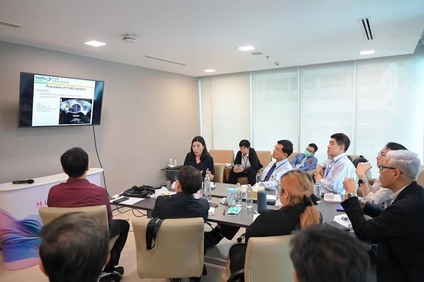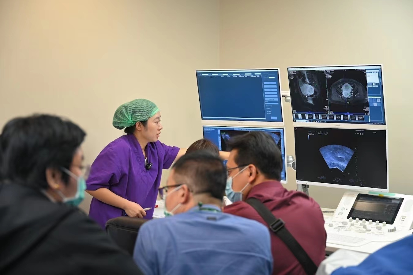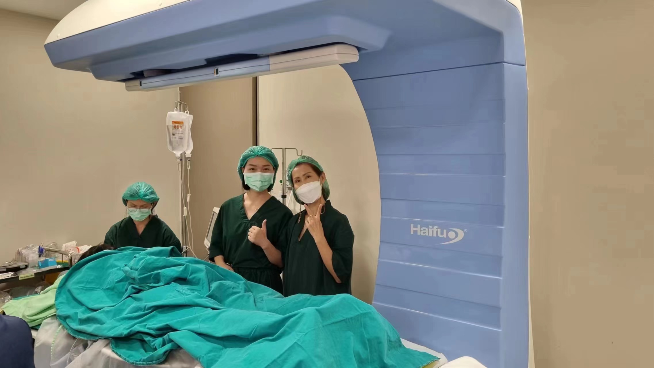 2023年8月,泰国patRangsit hospital(兰实医院)引进中国原创的“无创”手术设备——“海扶刀®”聚焦超声肿瘤治疗系统。日前,兰实医院海扶刀®正式投入运行,重庆海扶医院院长助理何敏教授、手术室周小勤护士长、岳燕医生组成专家团队前往该院进行临床培训、技术支持及指导。