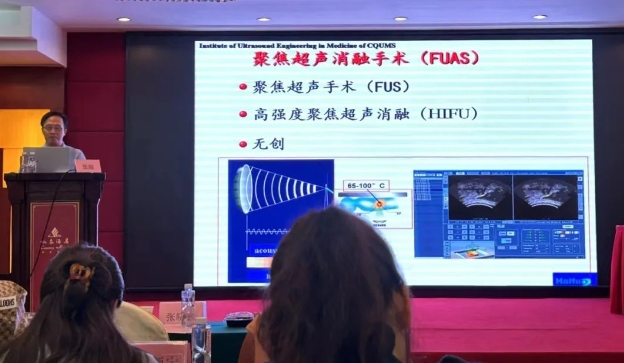 张炼教授向与会代表介绍了聚焦超声消融无创治疗子宫肌瘤、子宫腺肌病、胎盘植入等妇产科疾病的临床应用以及在妇科恶性肿瘤等方面的探索,特别是在保护女性生育力方面的优势,为妇产科疾病治疗提供了新的选择,希望让广大女性患者真正从科技发展中受益!