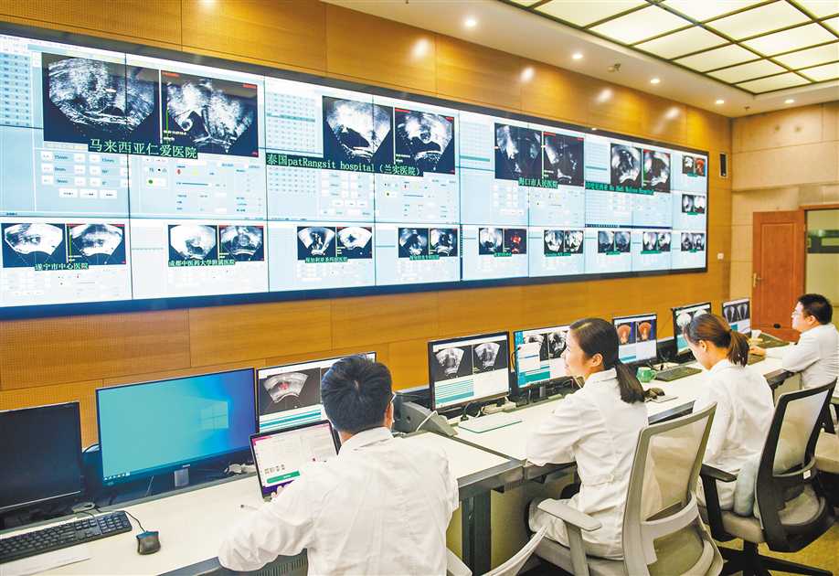 10月31日,重庆海扶医院,医生张蓉和同事通过远程技术指导泰国兰实医院、马来西亚仁爱医院的医生进行高强度聚焦超声肿瘤治疗手术。 |