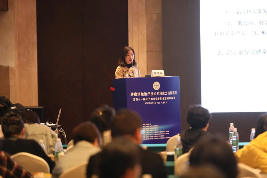 重庆海扶医院邹敏主任、陈骊医师也分别应邀进行了子宫肌瘤的聚焦超声消融治疗专题报告、超声消融临床手术操作视频讲解等,其丰富的临床案例与经验,吸引了专业学员们的提问不断。