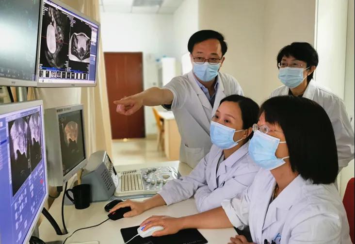 在海扶刀®治疗室,肖司长一行还现场观看了由邹敏主任主刀的一例有生育需求的子宫肌瘤患者、以及由邓勇斌医生主刀的一例血供丰富的子宫肌瘤患者的治疗。并详细询问治疗中是否疼痛、是否麻醉、如何保护正常组织、做了多少病例等。听到邹敏主任与患者在术中的对话,得知患者得到舒适的治疗,肖司长连连点头。