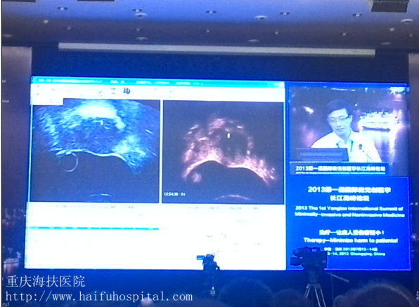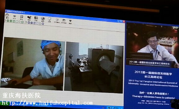 为了让与会者更直观地了解超声消融子宫肌瘤的全过程,大会主办方特邀重庆海扶医院远程同步直播治疗过程。