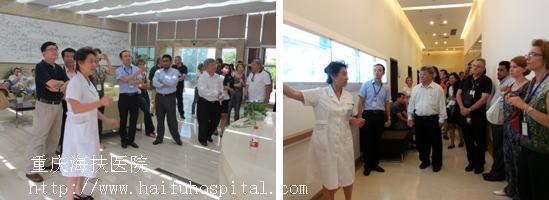 汪炼院长带着大家参观了海扶医院生命墙,并激情诠释了海扶医院LOGO的含义,向大家介绍了中国子宫肌瘤患者的发病情况及治疗现状。