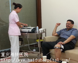 国外专家现场体验海扶原创的“超声膝关节治疗仪”